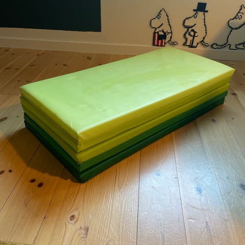 IKEA foldbar børnemadras i forskellige grønne nuancer. Madrassen kan foldes sammen for nem opbevaring og transport. Velegnet til børn og kan bruges til leg eller hvile.b 76 cm og L 185 cm. Har 3 stk. 100kr pr stk eller alle 3 for 250kr