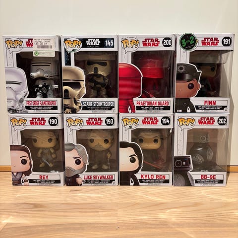 Funko Pop samling bestående af 14 figurer, 13 i original emballage. Figurenes specifikke modeller og karakterer varierer.