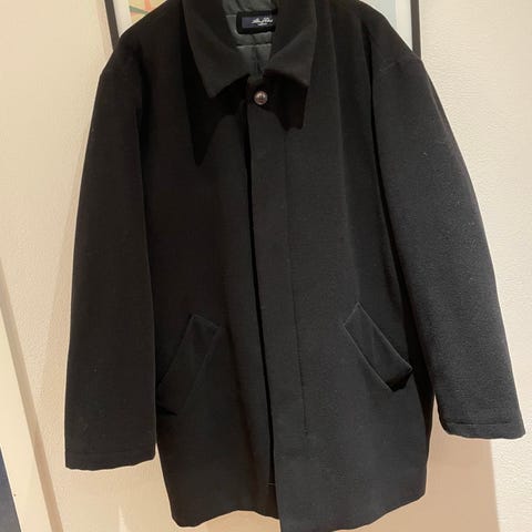 Allan & Clark frakke i størrelse L til herre. Frakken er grå og lavet af uld. Den har knapper foran og en klassisk krave. Indvendigt er den foret for ekstra komfort. Velegnet til udendørs brug i koldt vejr.