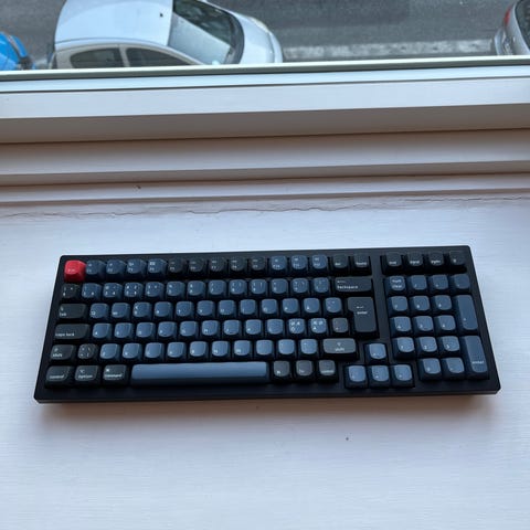 Keychron K2 mekanisk tastatur med kompakt design og rgb lys. Tastaturet kan tilsluttes med USB-C eller Bluetooth. Brown Switches. Ikke brugt særlig meget, men shift tasten har en lille kosmetisk fejl på siden, se billedet. Ellers intet andet.