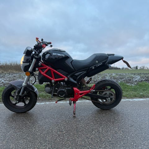 Har denne skymoto til salg bytter også med kabinescooter på el eller med benzin står som ny den er 3 måneder gammel har kørt få gange står indenfor ikke kørt i dårligt vejr alt virker sælges da den bare står og ikke kommer til at køre før til sommer den er med 4 gear sjov lille maskine ny pris 23.000