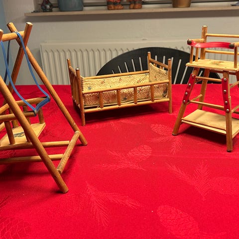Legetøjsmøbler sæt med badekar, stole, sofa og klaver