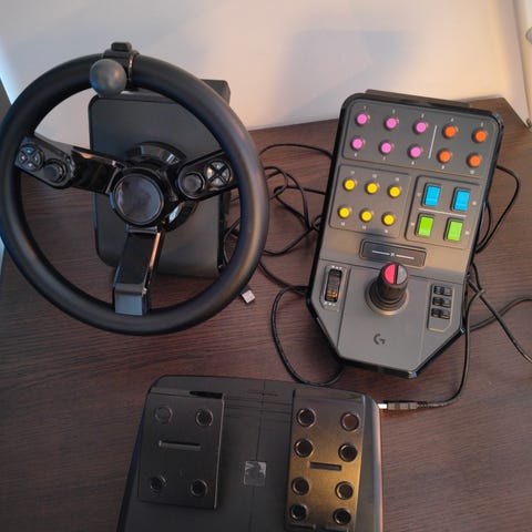 Sælger rat og gear-/kontrolpanel som vist på billederne. Velegnet til Farming Simulator, især hvis man vil have flere knapper og mere realistisk styring.