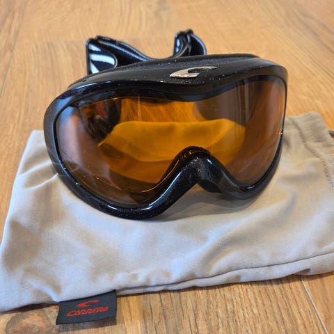 Original pose til opbevaring, transport og rengøring af sne-brillerne / goggles medfølger.