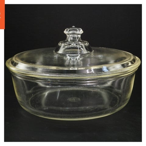 Pyrex glas låg med rund form og sort knap/håndtag. Passer til gryder eller pander med diameter 30 cm. Materiale: varmebestandigt glas med plastknap.