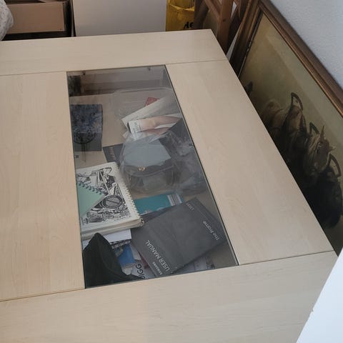 Sofabord fra IKEA med opbevaring. Brugt knap et år med meget få brugsspor. Se sidste billede for eksempel.