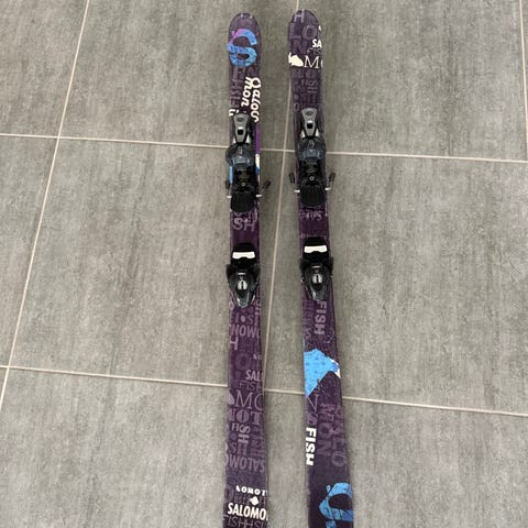 Salomon ski i str. 110cm med bindinger der kan jursteres i mange str. + et sæt skistave