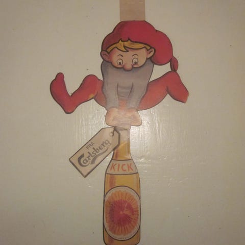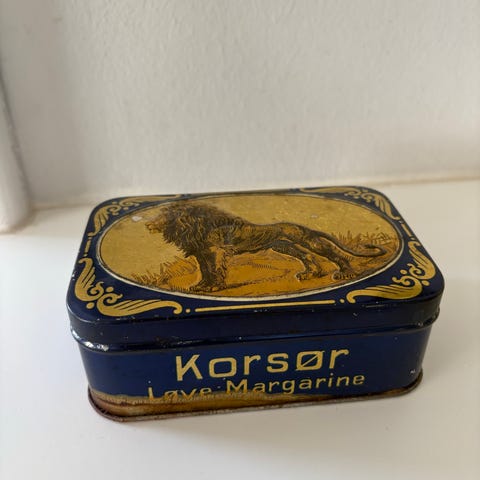 Droste dåse: 16 cm x 8 cm. Droste skilt 20 cm x 30 cm