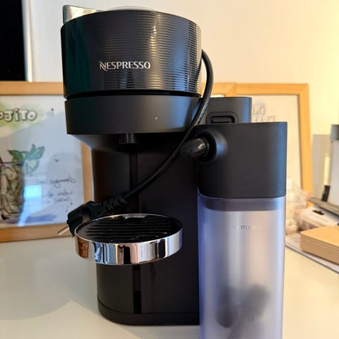 Nespresso kapsel maskine med mælkeskummer. God til både sort kaffe og mælkekaffe. Tykkelsen på mælkeskummet kan indstilles.