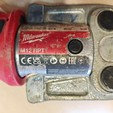 Milwaukee M12 pressmaskine med 1 batteri og 4 m bakker.