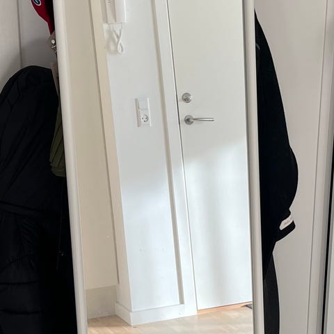 IKEA KNAPPER spejl. Bag spejlet er der både kroge og en bøjlestang.