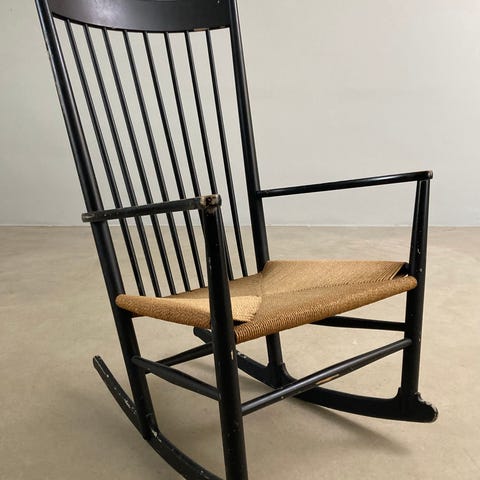 Original og autentisk J16 gyngestol designet af Hans J. Wegner, produceret for FDB Møbler i midten af 1960’erne.