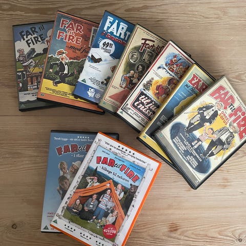 Far til Fire DVD-sæt bestående af flere film i serien, herunder :
