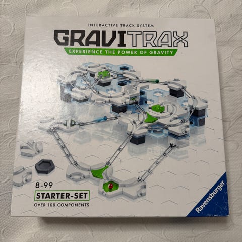 Fedt GraviTrax startersæt med grå, grønne, hvide og sølvfarvede elementer - Med GraviTrax kuglebanesystemet bygger du din egen kuglebaneverden.