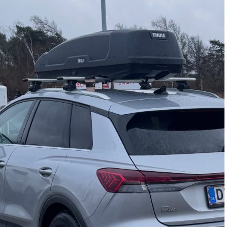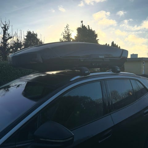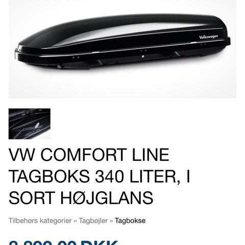 Tagboks (460liter) med tilhørende tagbøjler. Købt hos Volkswagen i april 2024. Brugt en gang. Fremstår som nyt.