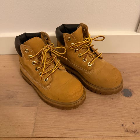 Timberland børnestøvler til dreng i størrelse 36. Støvlerne er designet med snørelukning og har en robust sål, velegnet til udendørs brug. Farven er mørk, og materialet er slidstærkt og vandafvisende.