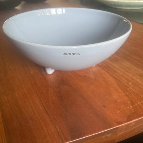 Eva Solo Globe skål i grå keramisk. Skålen har en diameter på cirka 25 cm og er designet til brug i køkkenet til servering eller opbevaring af mad.