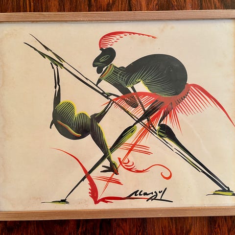 Afrikansk vintage akvarel fra Congo.