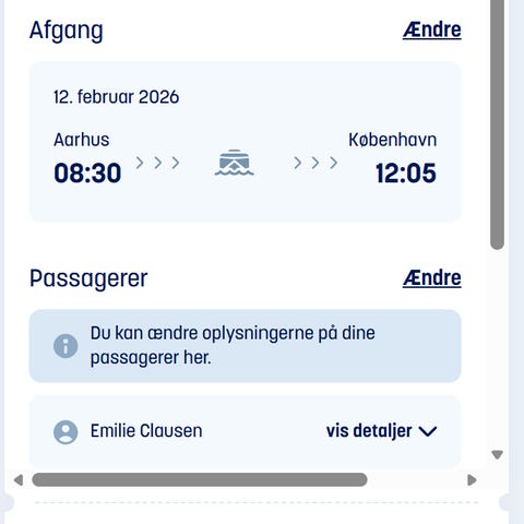 Rejsen er d. 25/1 kl 12.55 fra Århus. Købt for kr 219.-. Billetten er din for kr 180,-