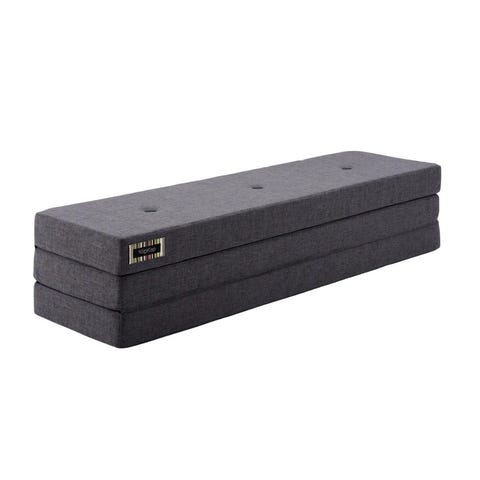 Den populære foldemadras KK 3 Fold består af tre store sammenklappelige lag, der kan foldes på forskellige måder alt efter dit behov. På den måde kan du veksle mellem at bruge madrassen sammenklappet som en stor puf, folde den ene del ud som ryglæn til en loungesofa eller bruge den i fuld bredde som gulvmadras. Den multifunktionelle madras kan endda anvendes som gæsteseng til dine overnattende gæster.