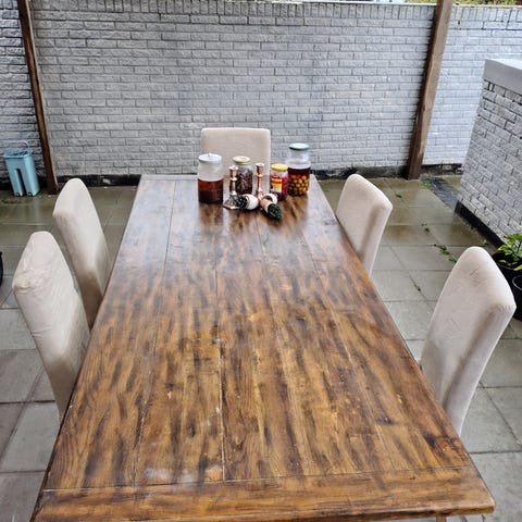 Bordet og stole står fint, men med brugspor og med skræmmer, derfor prisen.