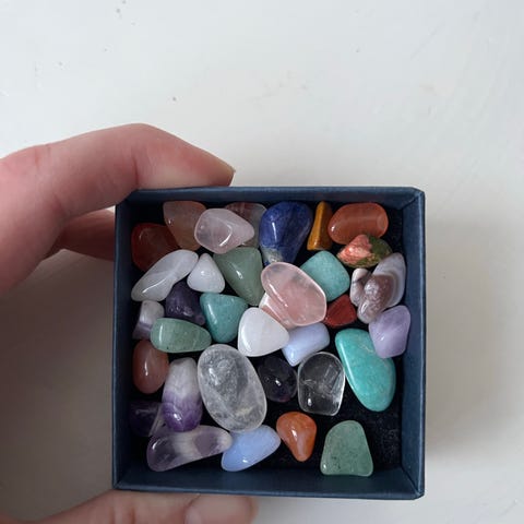 Krystaller - På billede 1: øverst - 2 Månesten og nederst Rosaquarts. Samlet 40,- kr