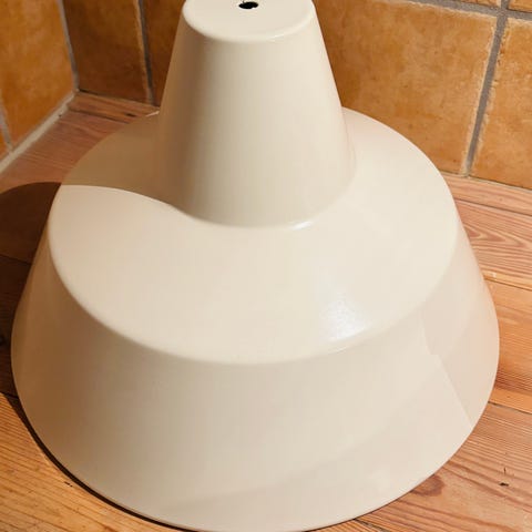 Louis Poulsen værkstedslamper (2stk). Begge har meget små skader på toppen, der ikke vil kunne ses ved brug (se billeder).