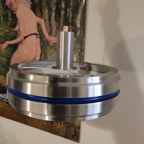 Det er den store 61 cm i dia. Den er ikke skæv.