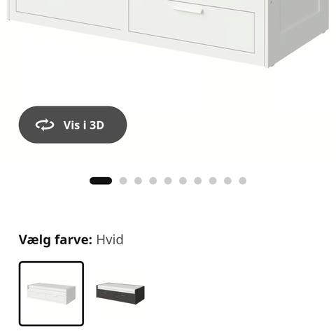 Sort Brimnes sovesofa med opbevaring. Madrasser medfølger. Se fuld beskrivelse af sengen på IKEA's hjemmeside: https://www.ikea.com/dk/da/p/brimnes-sovesofa-2-skuffer-2-madrasser-sort-agotnes-fast-s59497343/#content