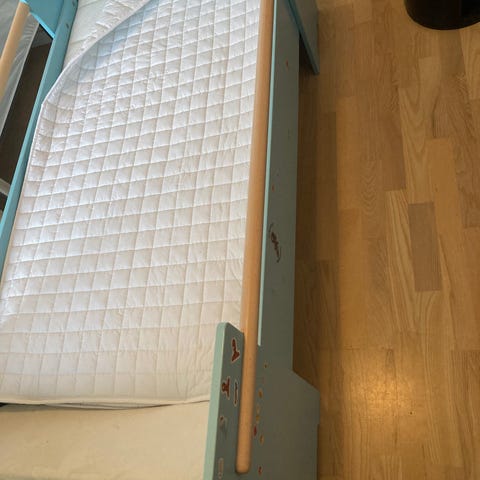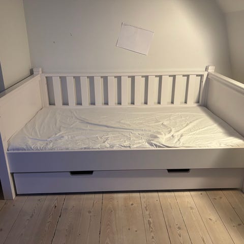 Hevali day-and-night børneseng. Kan trækkes ud til længe 134 cm og forlængere haves.
