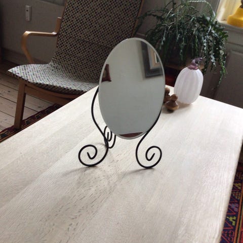 Rent og minimalistisk afrundet spejl med sorte kanter, 50 cm