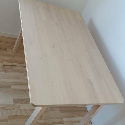 Sælger mit Ikea spisebord i asketræsfiner. Bordet er brugt, men i god stand uden større skader. Der er et par enkelte små mærker, som vises på billederne.