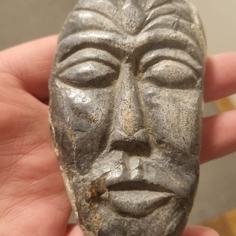 Ukendt amulet maske af sten/forstenet østers/musling skal
