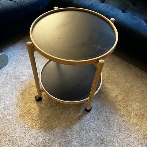 Rundt sidebord med rund glashylde skal sælge billigt og hurtigt Giv et bud fremstår rent og pænt og stærkt og funktionelt bredde 54 cm højde 81 cm jeg kan måske hjælpe med levering Giv et bud glasbord messingbord