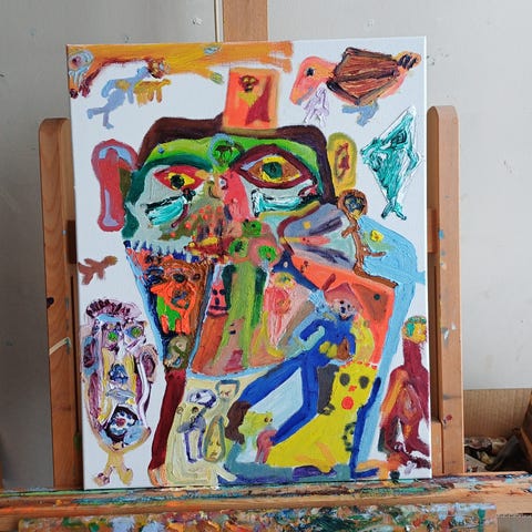 Maleri af en sort svane med detaljer i orange og sort, indrammet i en hvid ramme. Maleriet viser en tæt optegning af svanen med fokus på hoved og fjerdragt. Rammen er udstyret med ophængningsbeslag på bagsiden.