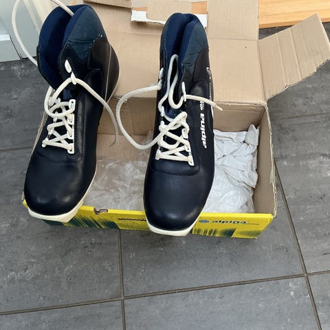 Skistøvler til langrendsski, nnn, str 47. Byttes for et tilsvarende par str 46. Alternativt pris 400kr. Køber betaler evt fragt.