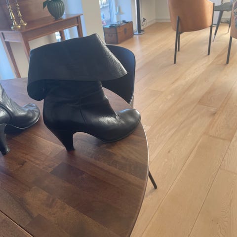 Meget lækker støvle brugt få gange. Total højde 45 cm, hæl 6 cm, omkreds ca. 38-40 cm