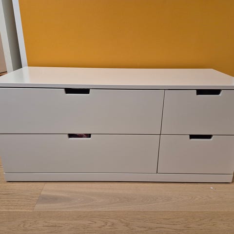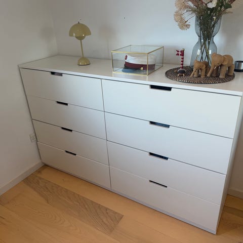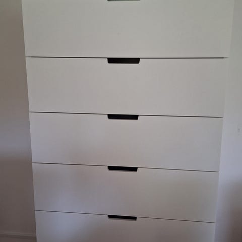 Ikea Nordli kommode - 6 skuffer, er knap nok blevet brugt. Ingen brugsspor, på nær ét lille hak i malingen på den midterste skuffe (de små) den står samlet klar til afhentning. ☺️