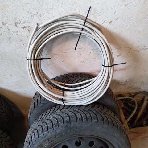 Nexans DK-EXQ EASY 3G1.5 500V elektrisk kabel med 3 ledere og en tværsnit på 1,5 mm². Kabelen er hvid og beregnet til elektriske installationer med en spænding på op til 500 volt.der er ca 55-60 meter