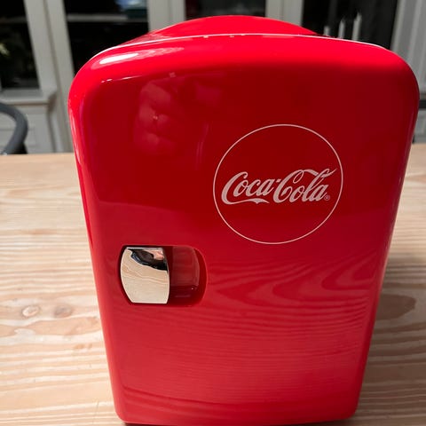 Coca-Cola mini køleskab. Får det desværre ikke brugt og da jeg står over for en flytning kan jeg ikke have det med længere. Har brugsspor men fejler ingenting. De to mini hylder der er i køleskab er aldrig blevet brugt men har fået “solskade” - derfor en smule misfarvning. Har aldrig brugt dem dog da de begrænser pladsen for sodavand i køleskabet
