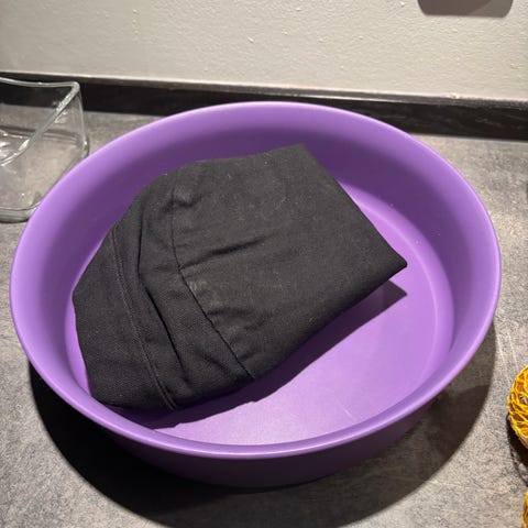 Kurven og den hvide brødpose har ikke været brugt.