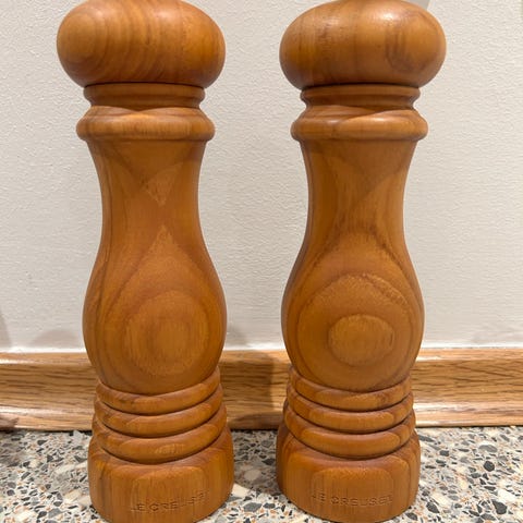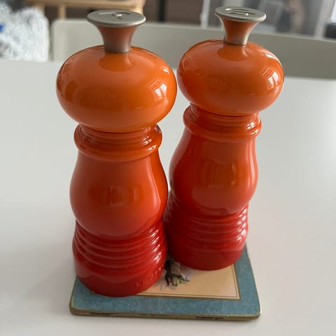 Le Creuset Salt- og Peberkværn sæt i orange farve. Sættet indeholder to kværne designet til at male salt og peber. Fremstillet i holdbare materialer med et karakteristisk design.