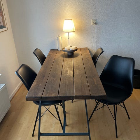 Plankebord og 4 spisestuestole