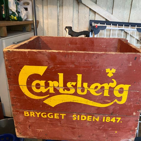 Tre gamle ølkasser fra hhv. Carlsberg og Ceres - samt en der er malet. Pris pr stk 90 kr - eller giv et bud.