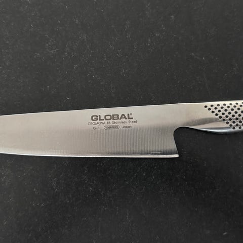Sælger denne klassiske Global G-2 kokkekniv i CROMOVA 18 rustfrit stål, med en bladlængde på 20 cm. En ægte japansk kvalitetskniv, der er kendt for sin skarpe æg og sit ergonomiske design.