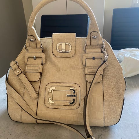 GUESS håndtaske til kvinde fremstillet i andre materialer. Tasken har en kombination af sort og blå farve og inkluderer detaljer som skulderrem og logo ved lukkefladen.