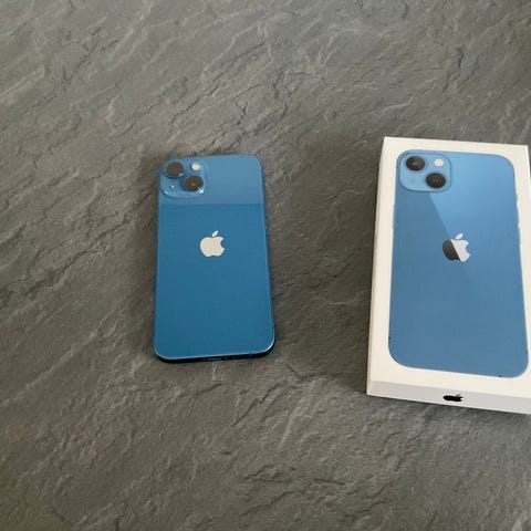 iPhone 13 med 128 GB i blå farve med 88 % batteri Max . Super fin med div stik til .