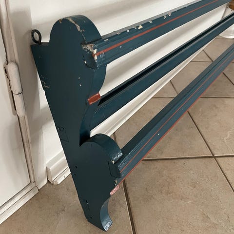 Antik tallerkenrække (eller din fremtidige boghylde?) i træ med ægte patina.