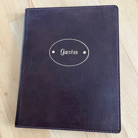 Genstanden velegnet som beskyttende etui til bøger. H 25 cm, B 18,5 cm.