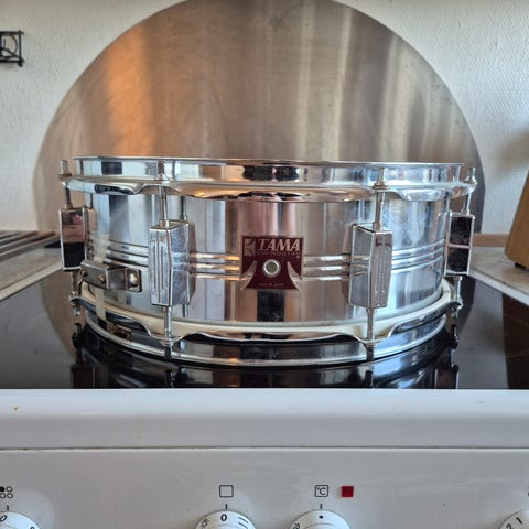 Tama Swingstar lilletromme. Stativet medfølger. Du får også øve-pad, ko-klokke og diverse stikker med i købet